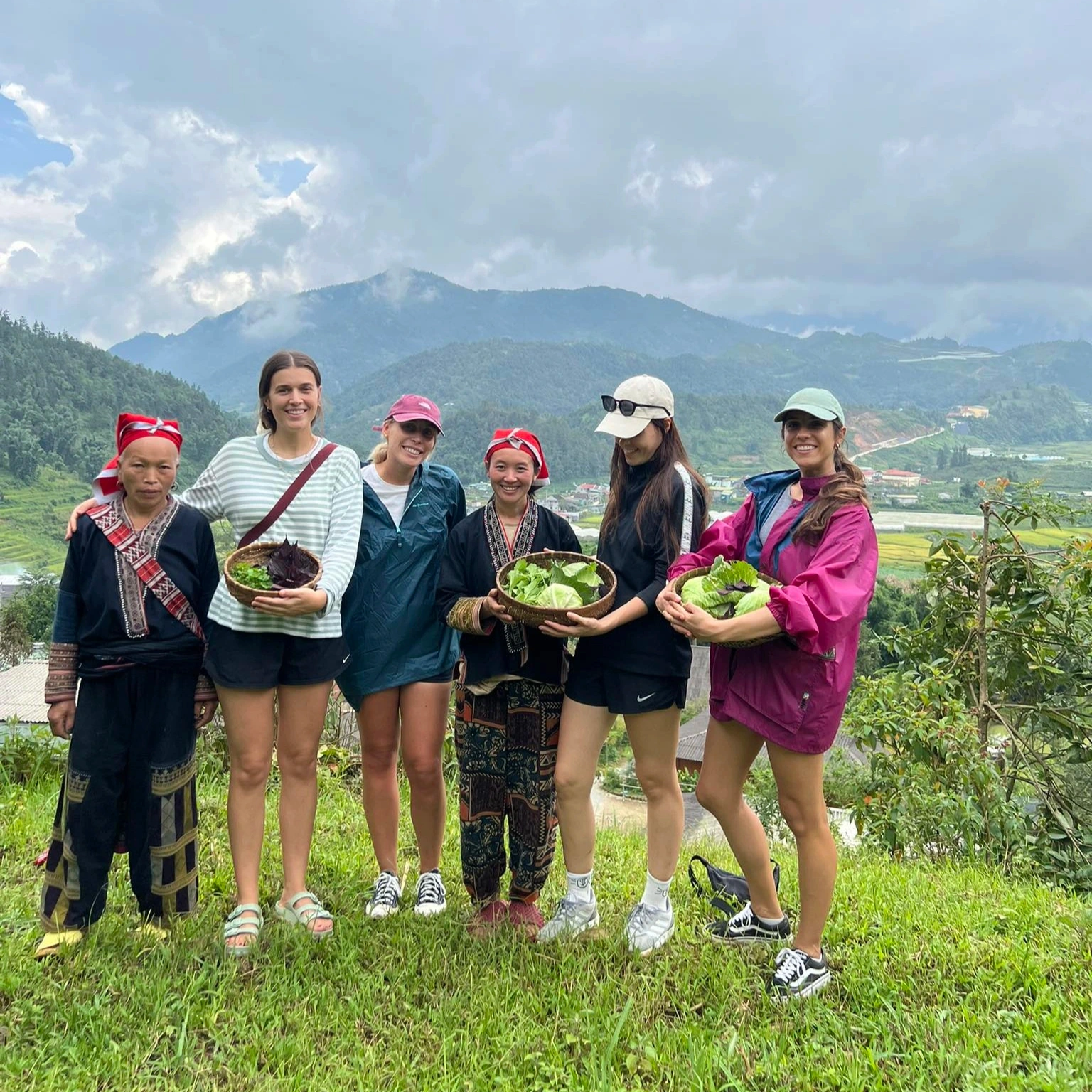 Khách Tây thích thú khi được trải nghiệm thu hoạch rau sạch cùng người địa phương ở Tả Phìn