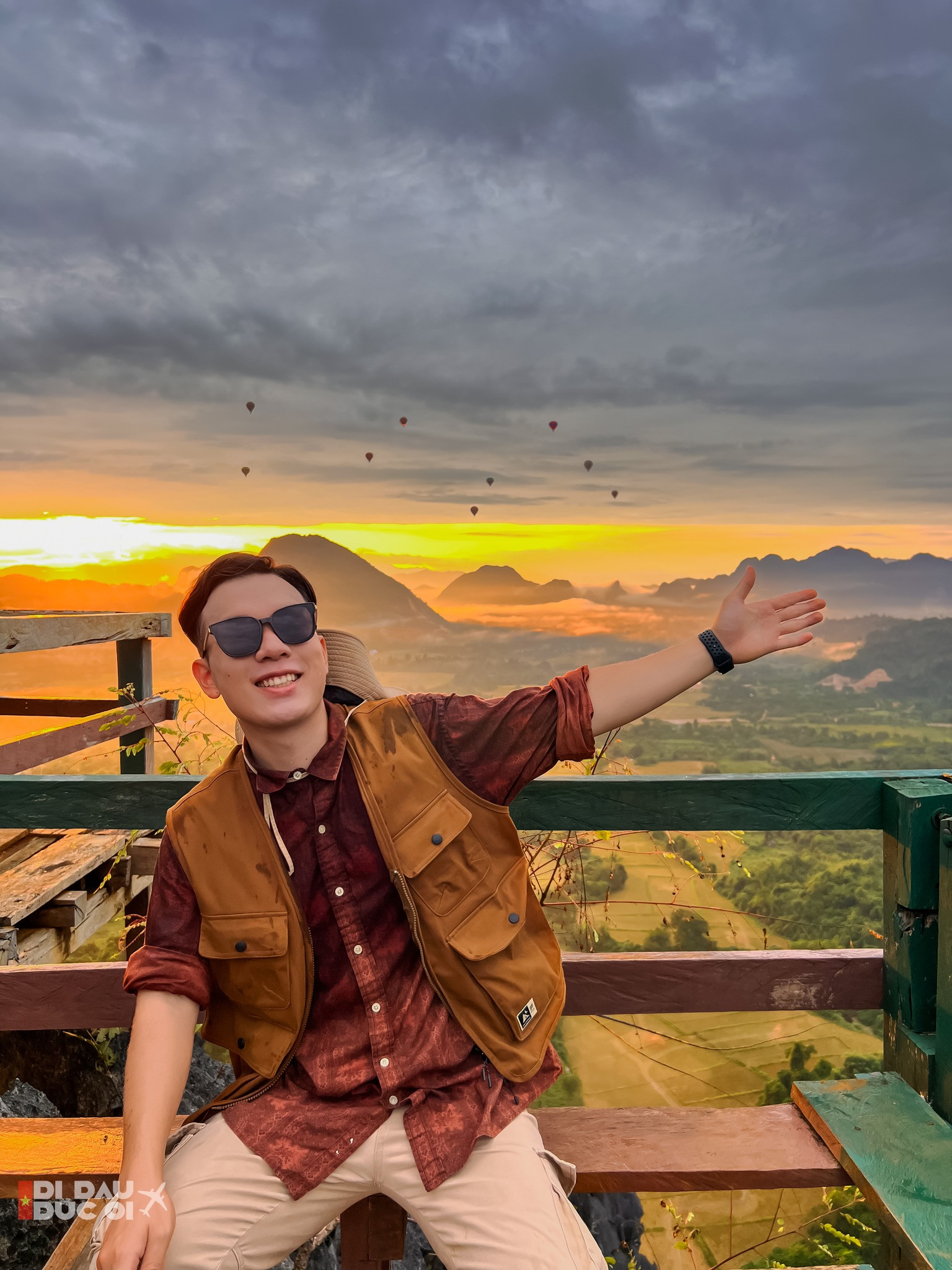 Điểm đến thứ 3 của Minh Đức là Vang Vieng - vùng đất có phong cảnh sông núi rất đẹp, thích hợp cho những vị khách ưa trải nghiệm ngoài trời, khám phá và thám hiểm.
