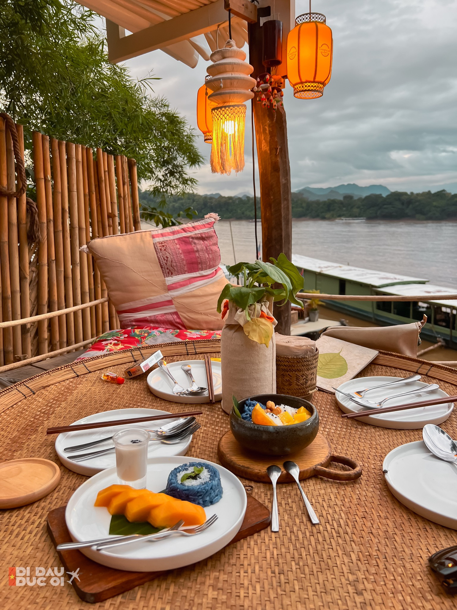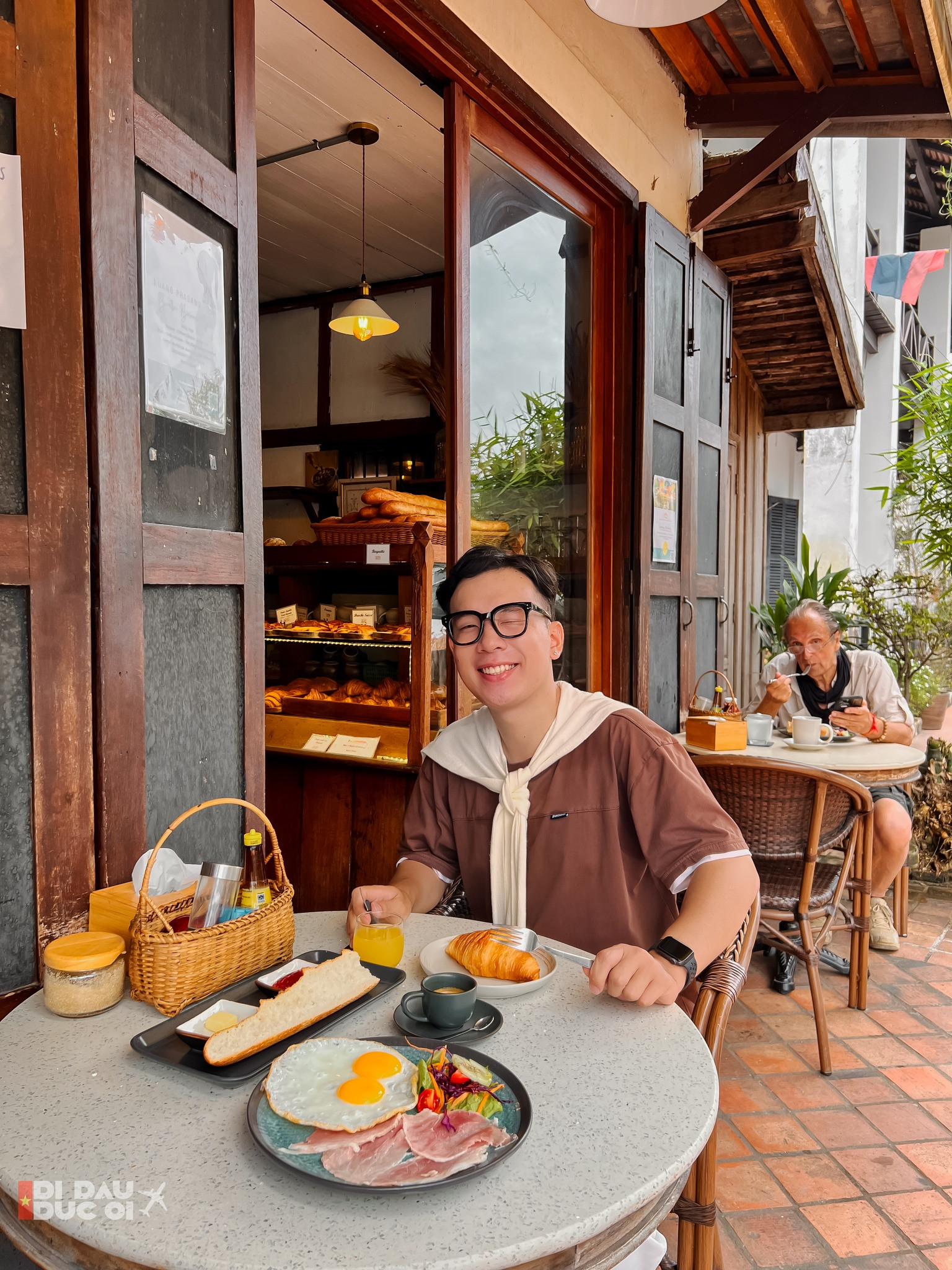 Tại Luang Prabang, Minh Đức còn trải nghiệm đi thuyền dọc sông Mekong, thong thả thưởng thức cà phê ở những quán rất đẹp như Maisom Sam San ở tầng thượng - nơi có thể ngắm trọn phố cổ Luang; Le Banneton Café & French Bakery - một tiệm bánh Pháp và những bữa tiệc điểm tâm rất ngon; Tropical Mekong - không gian xinh xắn bên bờ sông.