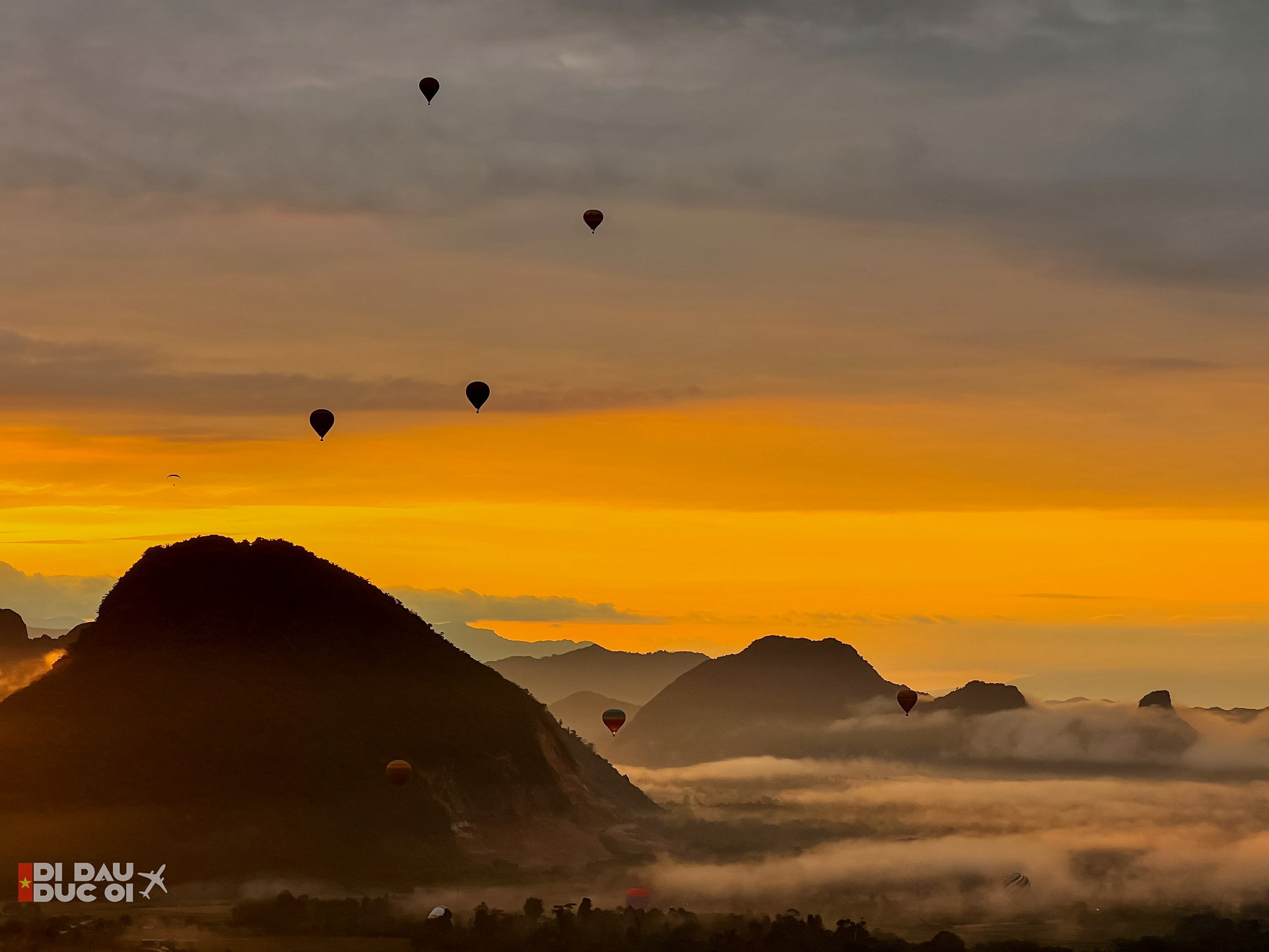 Thế nhưng thành quả của hành trình này là cảnh tượng đẹp như cổ tích. Ánh bình minh màu cam hồng hiện lên trước mắt nam du khách, núi non ẩn hiện trong sương mờ, xa xa là những chiếc khinh khí cầu đủ màu sắc.