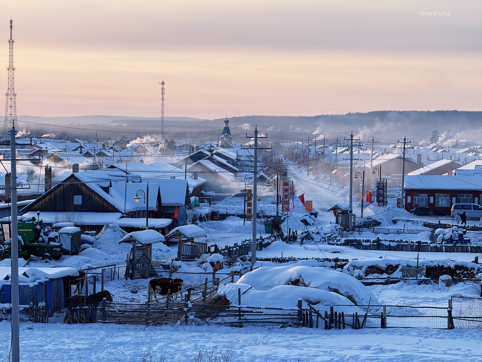 Không chỉ tới những điểm đến nổi tiếng của Hắc Long Giang, Hoàng Nga còn ghé thăm ngôi làng có thể lạnh tới -53 độ C, xung quanh chỉ có tuyết trắng dày đặc.