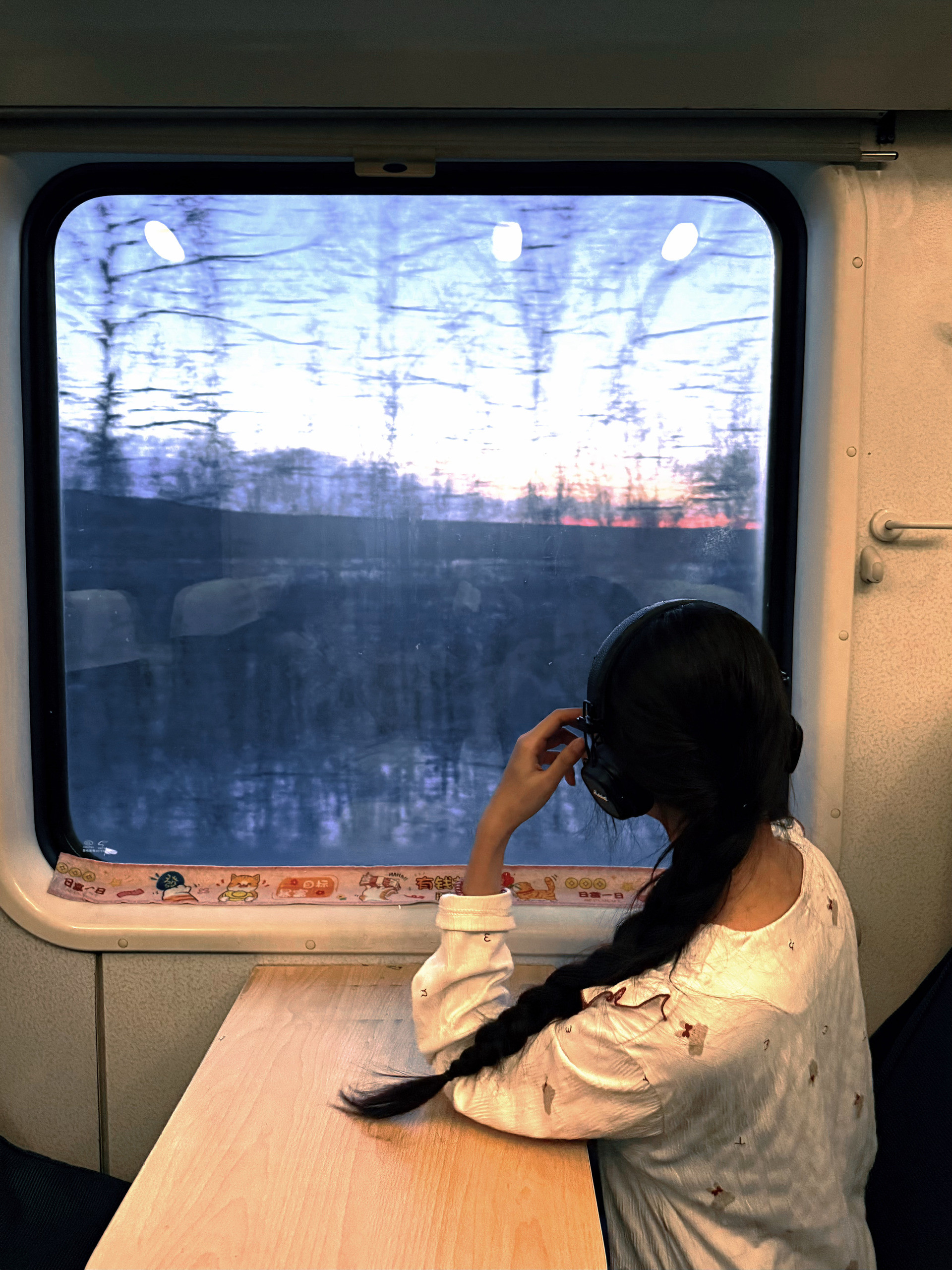 Hoàng Nga di chuyển từ Cáp Nhĩ Tân tới thành phố Mạc Hà bằng tàu hỏa trong khoảng 17 tiếng, sau đó đi ô tô thêm 2 tiếng để tới làng Bắc Hồng. Chuyến tàu nối hai thành phố đi qua nhiều điểm nổi tiếng nên vô cùng đông đúc.