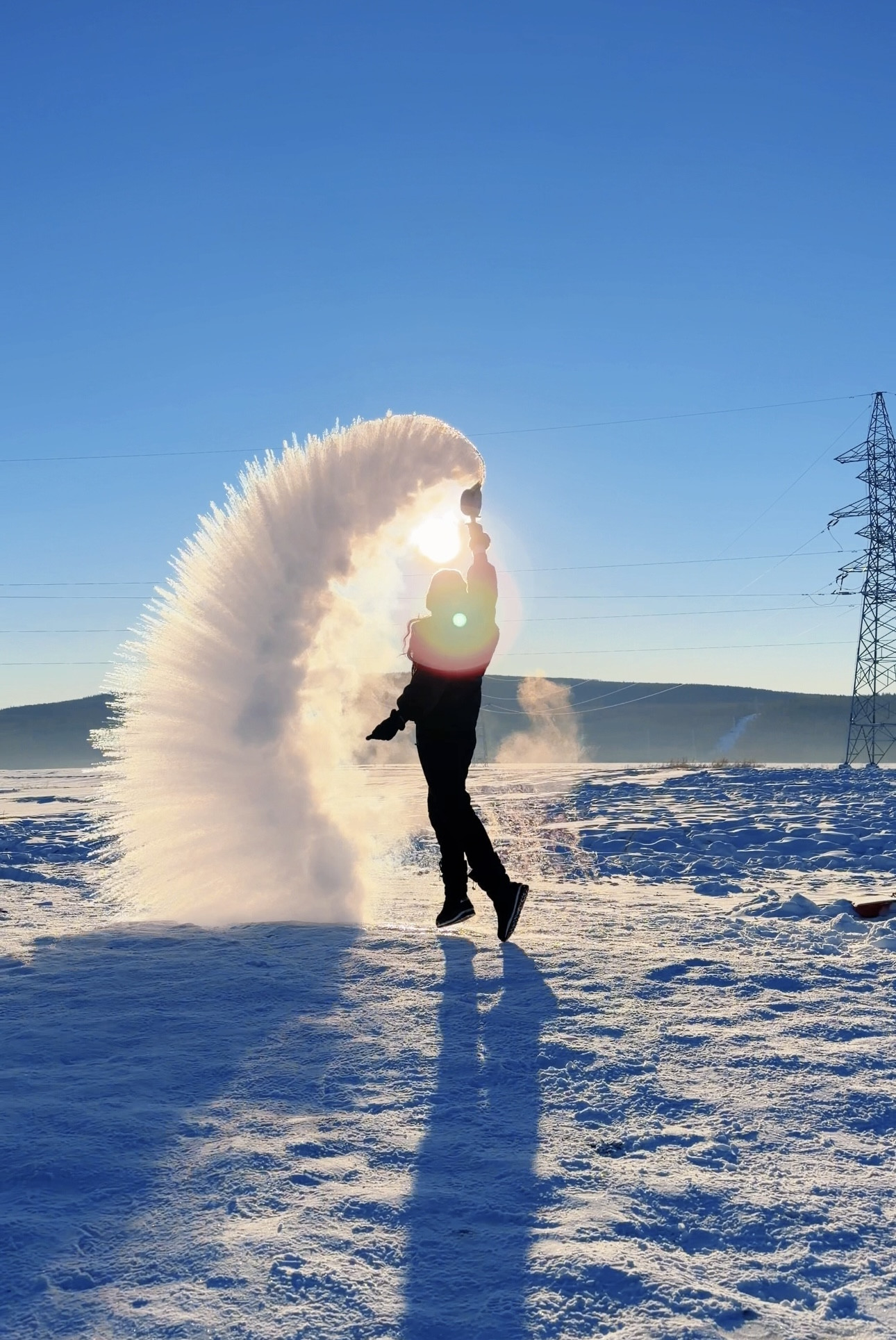 Ai tới đây cũng không thể bỏ qua trải nghiệm hất nước sôi lên không trung để chiêm ngưỡng chúng hóa băng tuyết trong giây lát